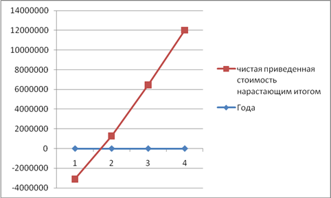 После того как мы продисконтировали прибыль и инвестиции, находим чистый дисконтированный доход и чистый дисконтированный доход нарастающим итогом:
