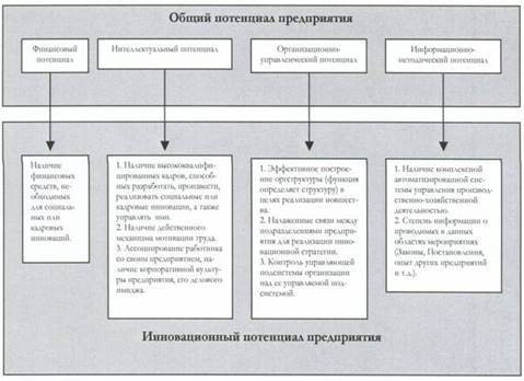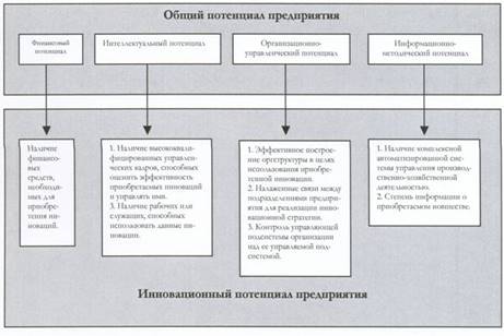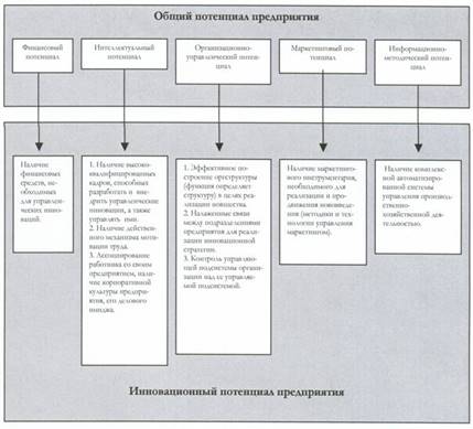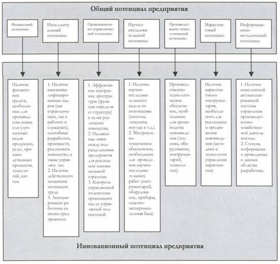 Примечание: в зависимости от вида инновации данная схема должна быть дополнена показателями научно-исследовательского, производственно-технологического и маркетингового потенциала, характеризующими уровень инновационного потенциала предприятия.
