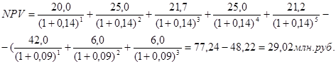 По проекту Б составляет величина чистой текущей стоимости составляет 29,02 млн. руб., т.е. NPV > 0, то проект также следует принять.