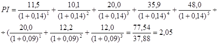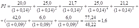 Индекс рентабельности характеризует уровень доходов на единицу затрат, т.е. эффективность вложений, чем больше значение показателя, тем выше отдача каждого рубля, инвестированного в данный проект.