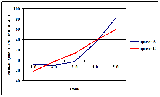 Рисунок 1. Срок окупаемости проектов А и Б без учета дисконта