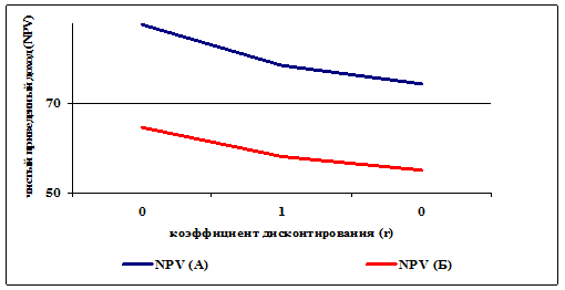 Анализируя рисунок 2 видно, что для проектов А и Б точку Фишера найти невозможно, так как их показатели окупаемости при одинаковых коэффициентах дисконтирования идут параллельно друг другу.