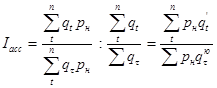 Индекс продажи товара отдельного ассортимента рассчитывается как отношение количества продажи данного товара за изучаемый период ( ) к предшествующему ( ) в натуральных единицах: