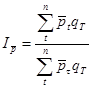 В общем индексе цен, т. е. в индексе цен по всем товарам, в качестве весов могут использоваться или количество каждого вида товара (qТ) в выбранном периоде, или стоимостные доли в объеме реализации (dtили дτ). В первом случае индекс имеет вид: