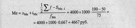 Следовательно, половина рабочих имеет среднемесячную заработную плату меньше 4667 руб., а половина - больше этой суммы.
