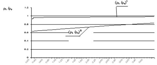Рис.5. Изменение отношения радиусов кривизны траектории автомобиля со схемой 1-2-00
