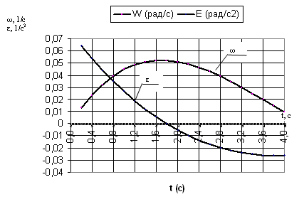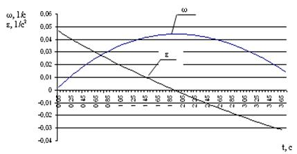 Рис.7. Изменение угловой скорости и углового ускорения вовременипродольной оси автомобиля со схемой 1-2-00