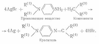 Сущность цветного проявления можно выразить схемой: