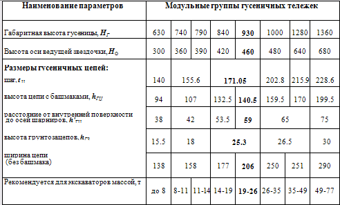 ) =44 (кПа). Все другие размеры гусениц назначают соответственно модульным группам (Таблица 2).
