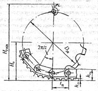 Рис. 2. Схема размеров в узлеведущей звездочки