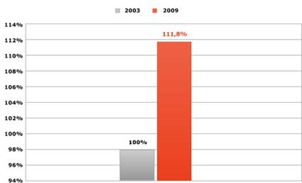 Улучшаются качественные показатели использования подвижного состава. За период 2003-2009 гг.: