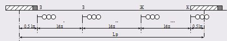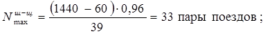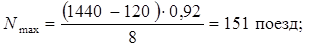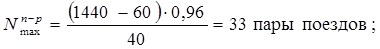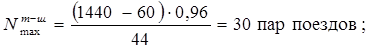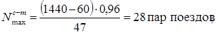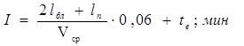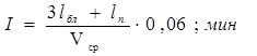 При разграничении поездов двумя блок-участками, интервал между поездами в пакете определяется по формуле: