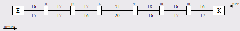 Вычерчиваем схему однопутного участка Е – К, наносим на неё наименование раздельных пунктов и перегонные времена хода грузовых поездов