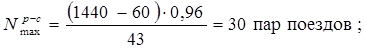 При разграничении поездов тремя блок-участками, интервал между поездами в пакете определяется по формуле: