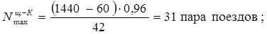 Труднейшим перегоном участка Е – К является перегон С – Т с максимальным временем хода пары поездов.