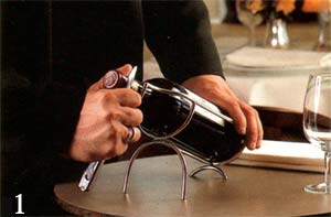 Прежде всего он показывает бутылку, заказавшему ее лицу. Очень важно дать возможность прочитать этикетку - визитную карточку вина.
