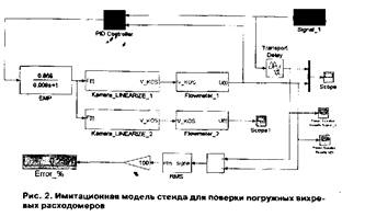 Для оптимизации конструктивных и метрологических параметров установки, а также с целью исследования погрешности воспроизведения расхода на имитационном стенде авторы статьи разработали математическую модель стенда в пакете Simulink программы Matlab.