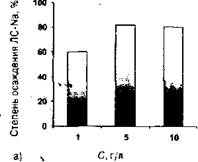 В экспериментах были использованы технические ЛС-Na филиала ОАО "Группа "ИЛИМ" в г. Коряжме (ТУ 13-0281036-029-94) и технический ПЭПА (ТУ 2413-357-00203447-99). Осаждение ЛС проводили с использованием ПЭПА. Готовили модельные водные растворы технических ЛС-Na с концентрацией 1 — 10 г/л. Отношение ПЭПА к ЛС-Na (Z) составляло от 0,001 до 1. Значение Z=0,1 наиболееблизко к эквимолярному в пересчете на содержание ионоген-ных групп ПЭ, участвующих в координации при образовании комплекса-осадка. Содержание ЛС-Na в растворе до и после комплексообразования определяли спектрофотометрическим методом по изменению оптической плотности в УФ-области спектра при длине волны 280 нм на спектрофотометре Specord М40. Установлено, что температура (от 20 до 60 °С) и продолжительность процесса (от 5 мин до 24 ч) не оказывают существенного влияния на выход комплекса-осадка. Во всей области исследуемых концентраций ЛС-Na при 2=0,1 1 степень извлечения ЛС-Na полиамином составляет 60 - 96 % (рис. 1).