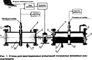 Погружные вихревые расходомеры являются новыми перспективными приборами, предназначенными для измерения расхода различных технологических жидкостей ЦБП, в частности сточных вод [1]. Но выпуск и эксплуатация таких приборов существенно сдерживается практическим отсутствием в России проливных установок на диаметры, превышающие 300 — 400 мы. В результате невозможно осуществить первичную и периодическую поверку таких приборов, испытания после ремонта и т.д. Поэтому крайне актуальна разработка оборудования и методов для имитационных испытаний. Особенно важна, на наш взгляд, возможность технологических испытаний расходометрической аппаратуры на таких стендах в рабочих условиях, в частности на реальной измеряемой среде. Поэтому основные задачи нашего исследования — разработка конструкции имитационного стенда, имитирующего гидродинамические воздействия на приемник-преобразователь вихревых колебаний (ППВК) расходомера, математической модели для оптимизации его параметров и расчета системы управления.