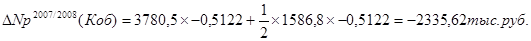 Общее влияние за 2007/2008 год: 12335,62-2335,62= 10000 тыс. руб.