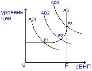 Точка E1 - это равновесие при неполной занятости без повышения уровня цен, т.е. без инфляции.