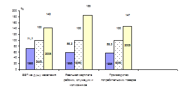 Рис. 1 - Динамика показателей уровня жизни населения (2005 г. – прогноз)