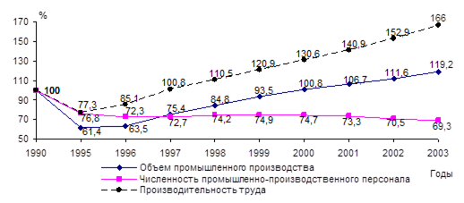 Общий объем промышленного производства в 2005 г. по сравнению с 2000 г. возрастет на 28–32%. Предусматривается реконструкция Белорусского металлургического завода, организация производства импортозамещающей техники в ПО «Минский моторный завод», реконструкция и модернизация производства большегрузных автомобилей в ПО «БелАЗ», создание субмикронного производства интегральных микросхем в НПО «Интеграл» и др.