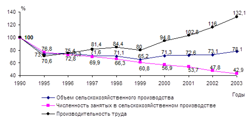 В результате в 2005 г. потребление основных продуктов питания на душу населения вплотную приблизится к уровню 1990 г.