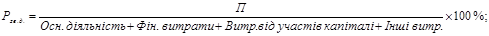 Рентабельність звичайної діяльності визначають як відношення прибутку, одержаного від звичайної діяльності, на суму витрат при здійсненні господарських операцій звичайної діяльності, який показує скільки отримано прибутку від звичайної діяльності з 1грн. звичайних витрат.
