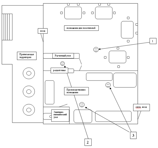 Кроме того, в процесс обслуживания кафе включены и другие вспомогательные операции – удаление пищевых отходов, а также инженерные устройства – приточная и вытяжная вентиляция, отопление, энергоснабжение.
