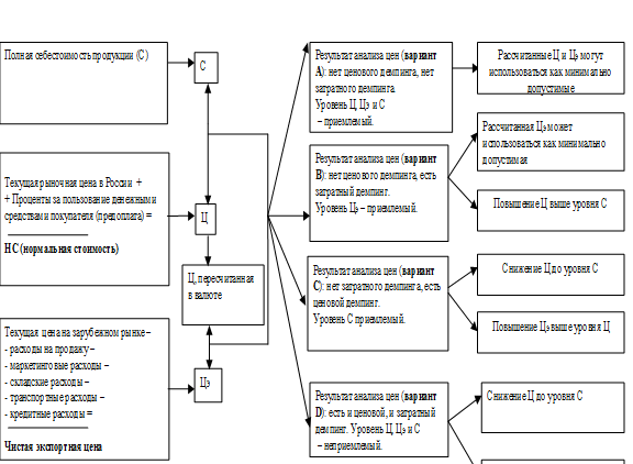 С – полная себестоимость, Цэ – минимально допустимая средневзвешенная экспортная цена для конкретного рынка.