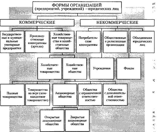 В зависимости от различий законодательного регулирования, связанного с формами собственности, а также особенностей организации юридические лица подразделяются следующим образом (рис. 1).