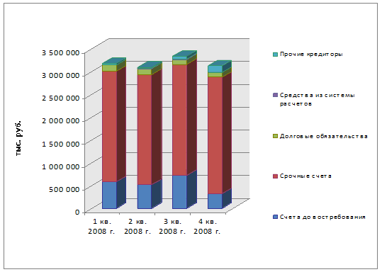Объем краткосрочного кредитования составил 624 018 руб. на 1 квартал 2008 г. и 716 276 руб., 722 120 руб., 663 311 руб. на 2, 3,4 кварталы 2008 г. соответственно.