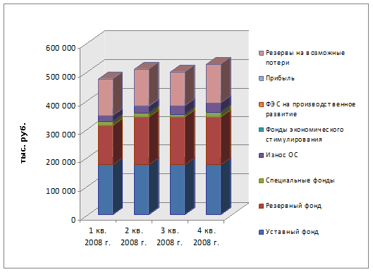 Непроизводительные активы на 1 квартал 2008г. составили 504 915 тыс. руб., 2 квартал 2008 г.– 383 927 тыс. руб., на 3 квартал 2008 г. – 459 260 тыс. руб., на 4 квартал 2008 г. – 593 126 тыс. руб. Динамика данного показателя неоднозначна.