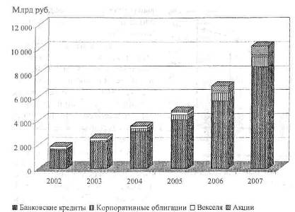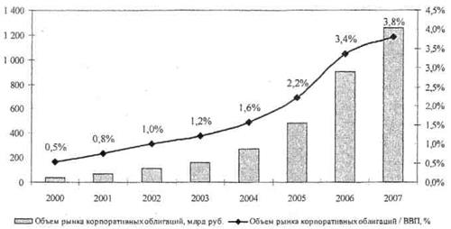 Российский рынок корпоративных облигаций в настоящее время используется в качестве привлечения инвестиций в основном крупным компаниями. По оценке ОАО «МДМ-Банк», и начало 2008 г. более 75% крупнейших российских компаний были представлены на рынке публичных облигационных займов. В то же время потребность в финансовых ресурсах стимулирует и средние компании к выходу на данный сегмент финансового рынка, для которых рынок корпоративных облигаций становится практически безальтернативным источником публичного финансирования. Выпуск еврооблигаций для них проблематичен, а размещение акций чревато потерей независимости.[10]