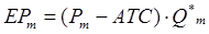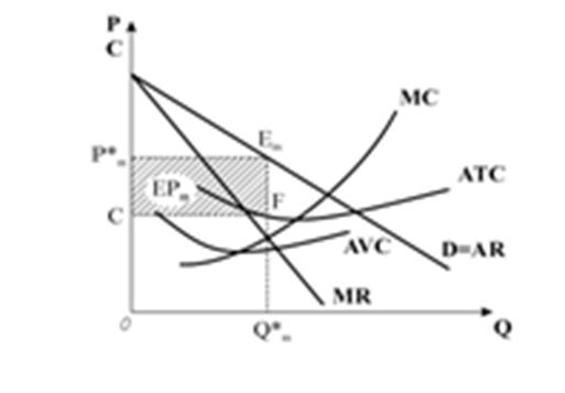 Якщо на оптимальному обсязі випуску ціна перевищує величину середніх сукупних витрат , монополія максимізує економічний прибуток. Сукупний прибуток монополії можна розрахувати за відомою нам загальною формулою: