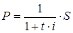 В нашем случае исходной величиной выступает не начальный вклад Р, а некоторая будущая сумма S. Вопрос состоит в том, чтобы определить эквивалентную сумму Р, отстоящую на t предшествующих периодов до срока выплаты S. В зависимости от принятого критерия эквивалентности можно выделить два подхода к расчету предшествующих сумм.