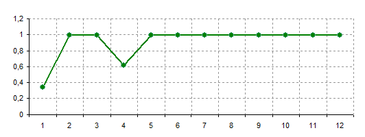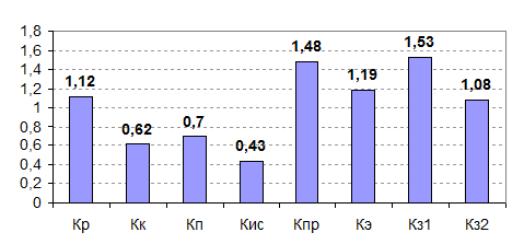 На основании расчета коэффициента комплексной оценки результатов управления цехом можно построить диаграмму, с помощью которой будет проще сделать общий вывод о состоянии эффективности управления цехом.