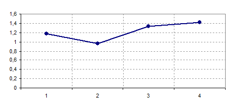 Анализируя данные диаграммы можно сделать вывод о том, что самым низким показателем в данном цехе является коэффициент исполнительности аппарата управления, что напрямую связано с качеством выпускаемой продукции и потерями рабочего времени по вине управленческих работников. Однако в этом цехе прослеживается самый высокий коэффициент премирования работников управления, что противоречит результатам их работы. Низкая исполнительность и дисциплинированность работников отрицательно сказываются на всех показателях.