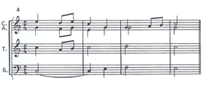 Супровід може повністю дублювати хорову партитуру (якщо не зважати на інструментальну фактуру акомпанементу), отже, підтримувати хор гармонічно і ритмічно. Такого роду супровід часом має назву ad libitum – «за бажання», тобто, в разі достатньої кваліфікації хору цей твір може виконуватись a cappella.