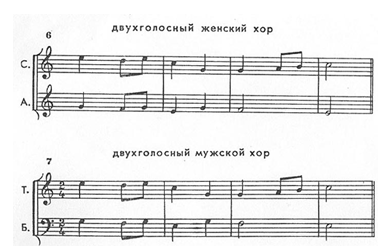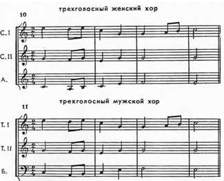 У далекій минувшині, в епоху розвитку поліфонії, багатоголосні хори були звичайним явищем – шестиголосні, восьмиголосні, дванадцятиголосні й навіть більше. Нерідко восьмиголосні і дванадцятиголосні хори являють собою сполучення двох або трьох чотириголосних. Тоді ми маємо так звані подвійні або потрійні хори.