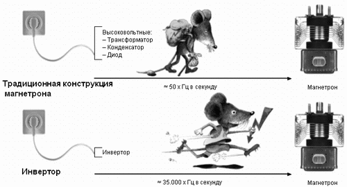 | 4. Промежуточные уровни мощности микроволн достигаются попеременным включением и отключением магнетрона на максимальную мощность.