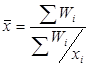 Средняя гармоническая невзвешенная определяется по формуле: