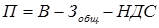 Прибыль отчетного периода по предприятию рассчитывается по формуле: