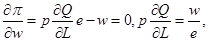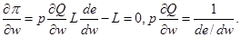 Дифференцируя по L и w, мы получаем два условия первого порядка: