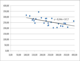 Результати факторного групування показують, що найбільш впливомими факторами на урожайність зернових культур є розмір виробничих витрат з розрахунку на 1 га.. Очевидно, що на зернових не лише за умови додаткових капіталовкладень можна утримувати високий рівень урожайності, а для отримання її природнім шляхом слід висівати культуру на родючих грунтах.