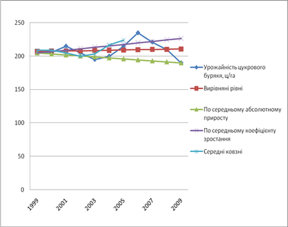Вивчення рядів динаміки по урожайності зернових культур з використанням даних показує загальну тенденцію до підвищення урожайності в період 1996-2006 рр порівняно з такою в базовому 1996 році.