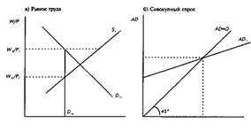 , то существует полная занятость при условии, что уровень номинального спроса в экономике достаточен, чтобы потребить тот объем продукта, который хотят продать фирмы. Рассмотрим теперь увеличение реальной заработной платы до (W