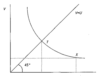 ) будет составлять спросодефицитную часть безработицы, т. е. ту ее часть, которая может быть уменьшена за счет политики увеличения совокупного спроса без ухудшения приемлемого для общества сочетания безработицы и инфляции. Дальнейшее увеличение спроса приводит к увеличению инфляции, отрицательные последствия которой перекрывают для общества положительный эффект от снижения уровня безработицы. U