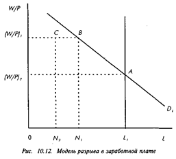 В соответствии с этой моделью величина разрыва в реальной заработной плате вместе с углом наклона функции спроса на труд DL